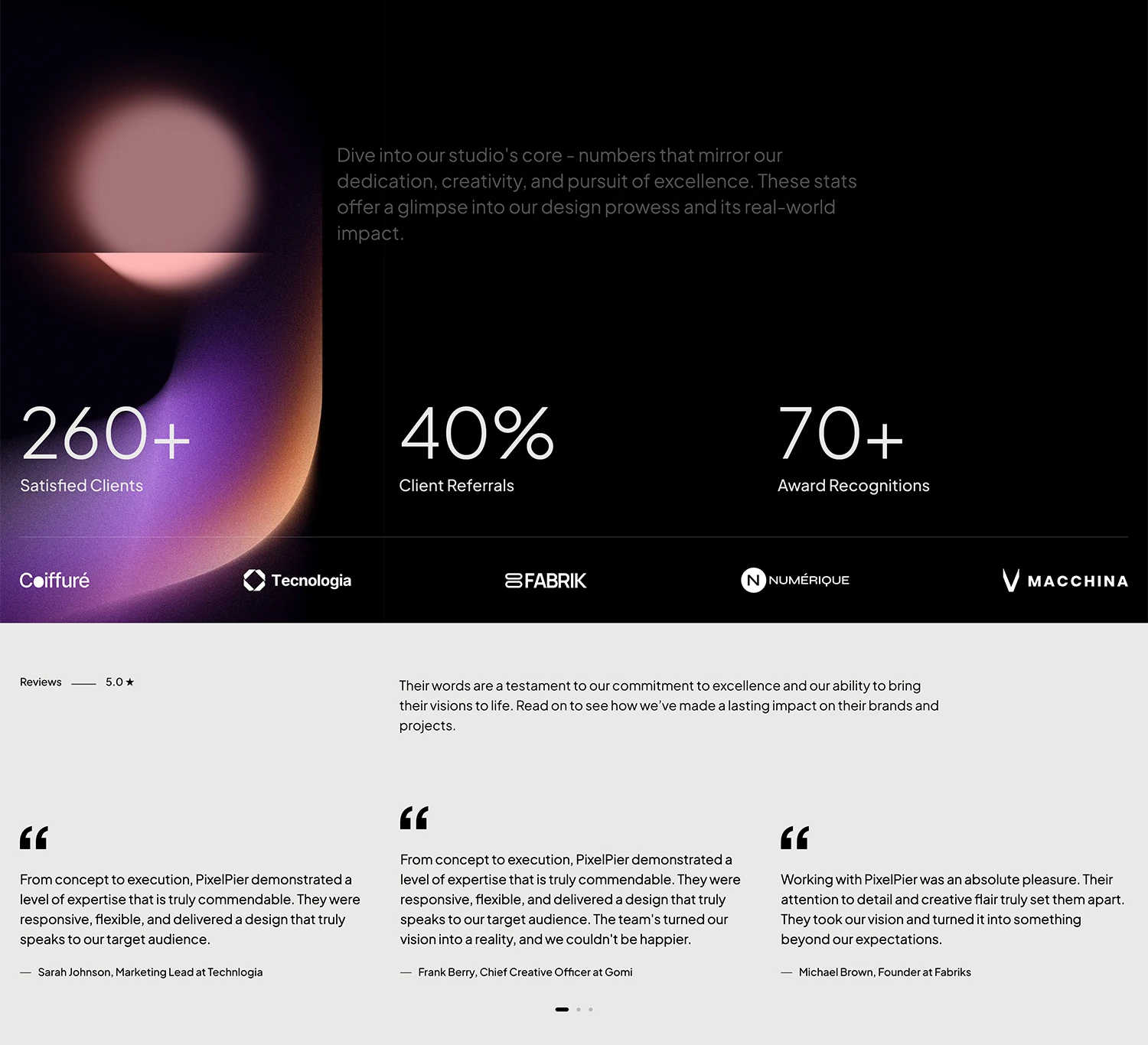 Designed for a team that lives at the intersection of code and creativity, this project brought together immersive visuals, animated storytelling, and advanced frontend techniques. From interactive 3D headers to seamless transitions, every detail was curated to reflect the studio’s innovative approach to digital design.